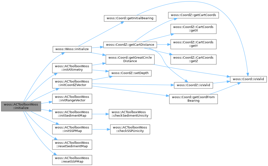 References altimetry_value, coordz_vector, initAltimetry(), initCoordZVector(), woss::Woss::initialize(), initRangeVector(), initSedimentMap(), initSSPMap(), max_altimetry_depth, max_bathymetry_depth, min_altimetry_depth, min_bathymetry_depth, range_vector, resetSedimentMap(), and resetSSPMap().
