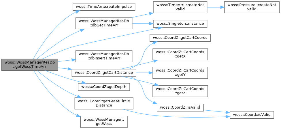 References woss::TimeArr::createImpulse(), dbGetTimeArr(), dbInsertTimeArr(), woss::WossManager::debug, woss::CoordZ::getCartDistance(), woss::CoordZ::getDepth(), woss::Coord::getGreatCircleDistance(), woss::WossManager::getWoss(), woss::Singleton< T >::instance(), woss::WossManager::is_time_evolution_active, woss::WossManager::NO_EVOLUTION_TIME, and woss::WossManager::woss_creator.